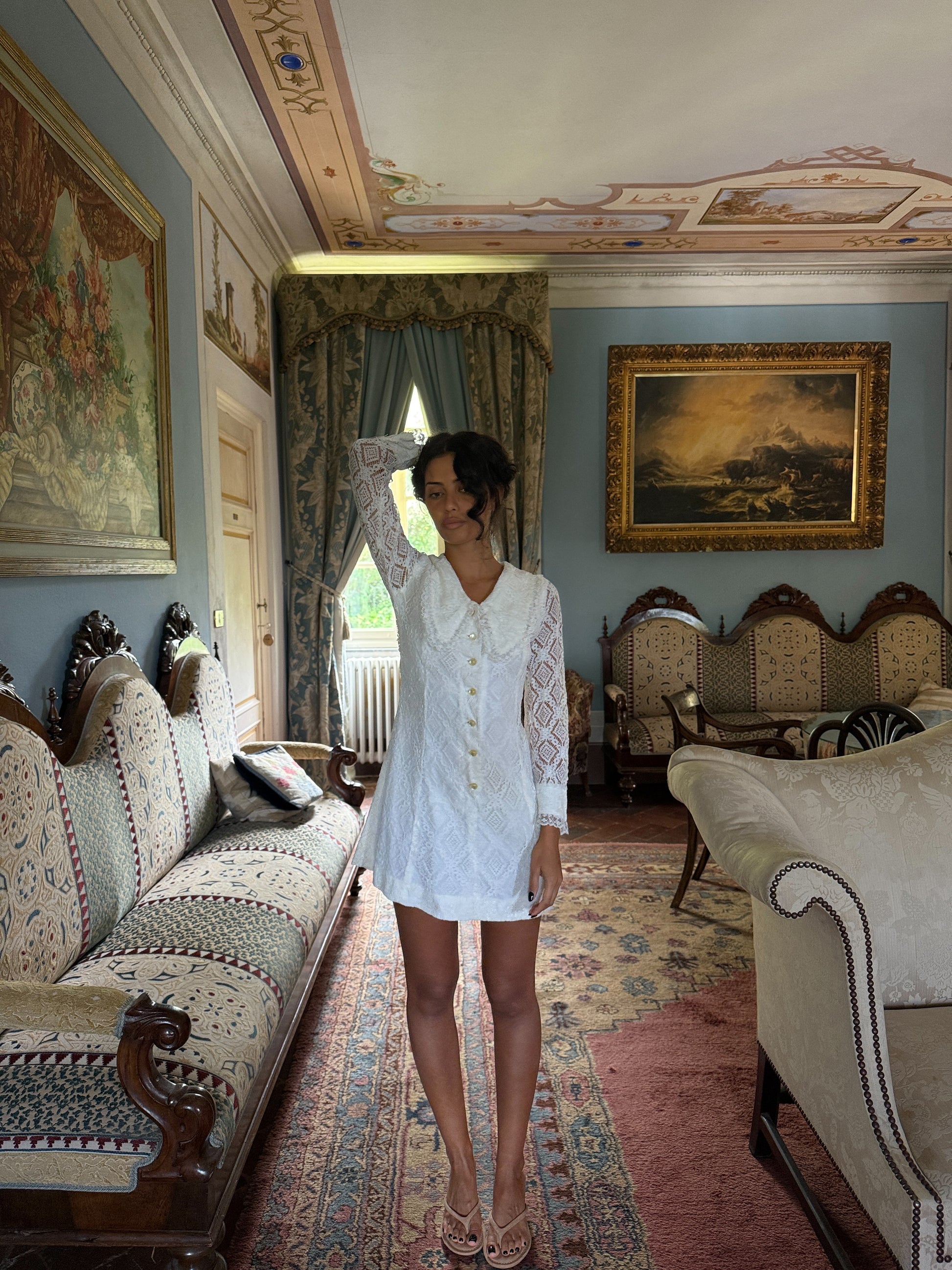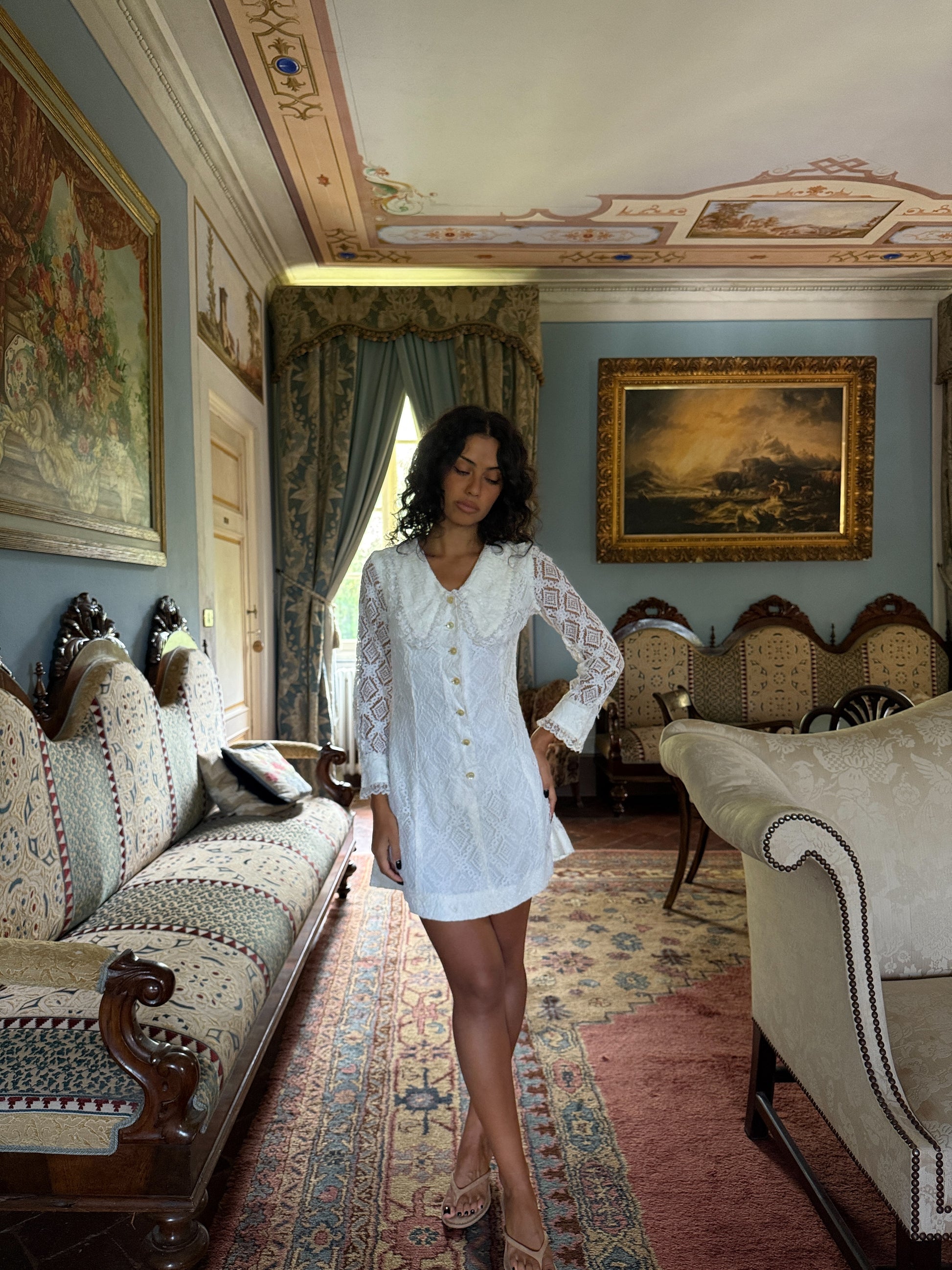 Antoinette Lace Button-Front Mini Dress White (XS-S)